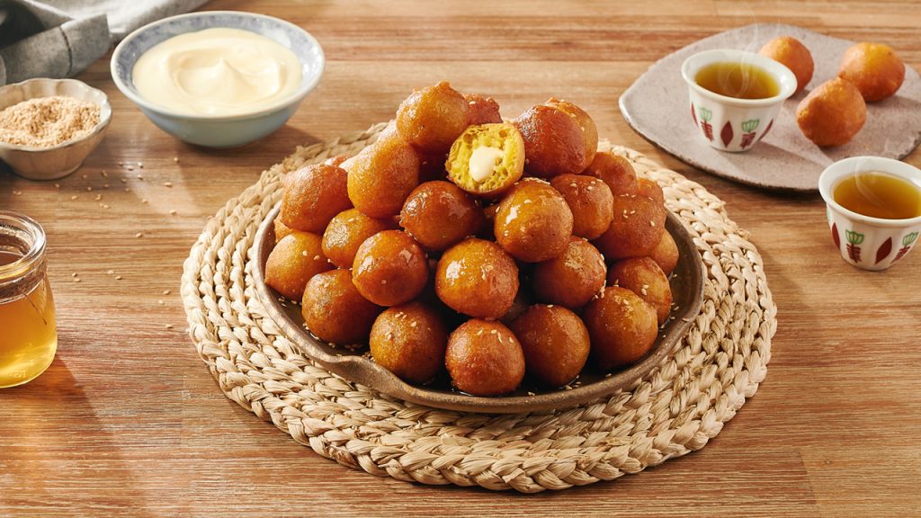 Camilan manis berbentuk bulat, di goreng hingga renyah, lalu di siram sirup kurma atau madu. Cocok di nikmati sore hari sambil minum teh.