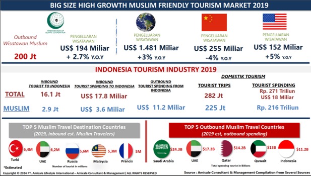 Potensi pasar untuk pariwisata ramah Muslim adalah signifikan, mengingat meningkatnya jumlah wisatawan Muslim di seluruh dunia. Menurut penelitian, pengeluaran perjalanan Muslim adalah sekitar USD 194 miliar dengan pertumbuhan +2,7% Y.o.Y pada tahun 2019, dan diperkirakan akan tumbuh mencapai USD 225 miliar di tahun 2028, menjadikannya salah satu segmen yang paling cepat tumbuh di industri pariwisata global. Dengan memenuhi kebutuhan dan preferensi khusus wisatawan Muslim, bisnis dapat memanfaatkan pasar yang menguntungkan ini dan meningkatkan daya saing mereka di sektor pariwisata. Selain itu, mengadopsi praktik ramah Muslim mempromosikan keragaman, inklusivitas, dan pemahaman budaya, berkontribusi pada pertumbuhan keseluruhan dan keberlanjutan industri pariwisata.